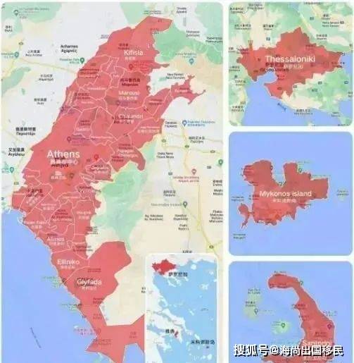 依据希腊展开部提交的“黄金签证”修正案,所触及涨价的行政区域包含: 一、雅典中部区域:Athens、Vyronas、Galatsi、Dafni-Ymmitos、Zografou、Ilioupoli、Kaisariani、Filadelfeia - Halkidona 二、雅典北郊区域:Agia Paraskevi、Marousi、Vrilissia、Heraklion、Kifisia、Lykovrisi-Pefki、Metamorfosi、Nea lonia、Papagos-Holargos、Penteli、Filothei-Psyhiko、Chalandri、Ekali 三、雅典南郊区域:Agios Dimitrios、Alimo、Glyfada、Elliniko、Kallithea、Moschato、Tavros、Nea Smyrni、Palaio Faliro、Argyrupoli、Voula、Vuliagmeni、Vari 四、塞萨洛尼基 Thessaloniki 五、米科诺斯 Mykonos island 六、圣托里尼 Santorini island 关于希腊其他地域,例如阿提卡大区东部、西部和比雷埃夫斯市等,将保存25万欧元的最低投资门槛不变。
