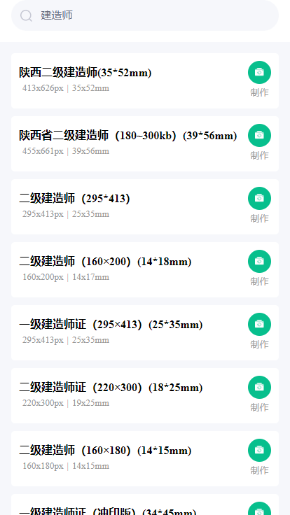 选择自己报名所在区域请求的证件照规格选择适合的尺寸。上传照片或者直接拍照就能够制造合规照片啦。 |