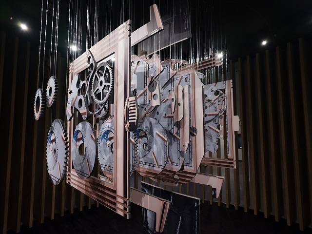 积家Reverso翻转系列主题展览 - 经典传奇篇章 在展厅中央,参观者还可一睹积家为留念Reverso翻转系列腕表九十周年,委托美国著名艺术家迈克墨菲(Michael Murphy)特别创作的全新艺术装置时·空(Spacetime)。艺术家经过这件作品探求三维空间与第四维度时间的关系,以引人入胜的共同方式,捕获了计时与制表的诱人美感与精准特性。