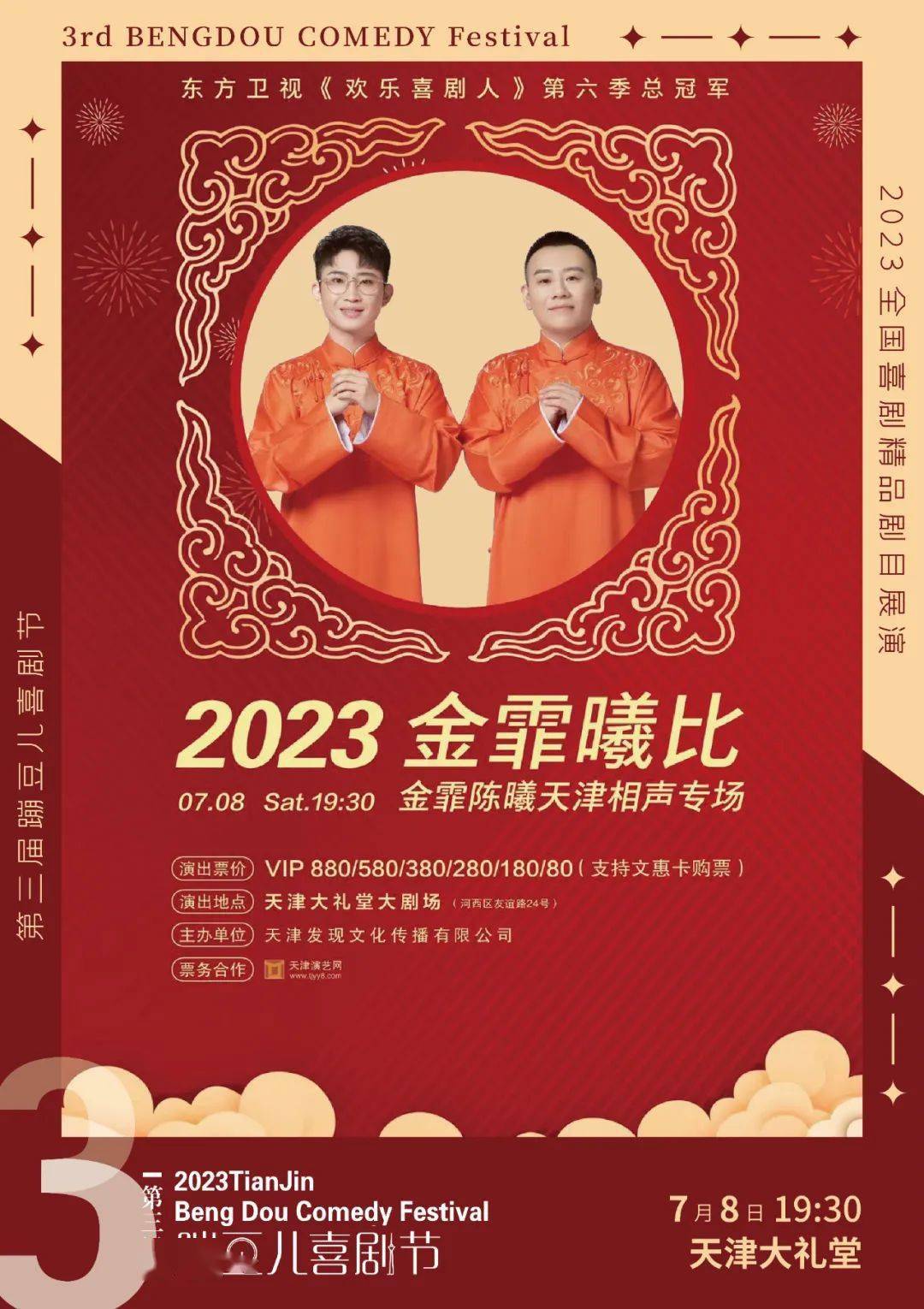 金霏陈曦天津相声专场 金霏、陈曦 90分钟 天津礼堂大剧场 2023-07-08 19:30 第三届“ 蹦豆儿”喜剧节 更多好戏 后面会陆续发布、开票 欢送大家持续关注“天津文化惠民卡” “天津演艺网票务管家”微信公众号 更多精彩行将演出,我们不见不散! |