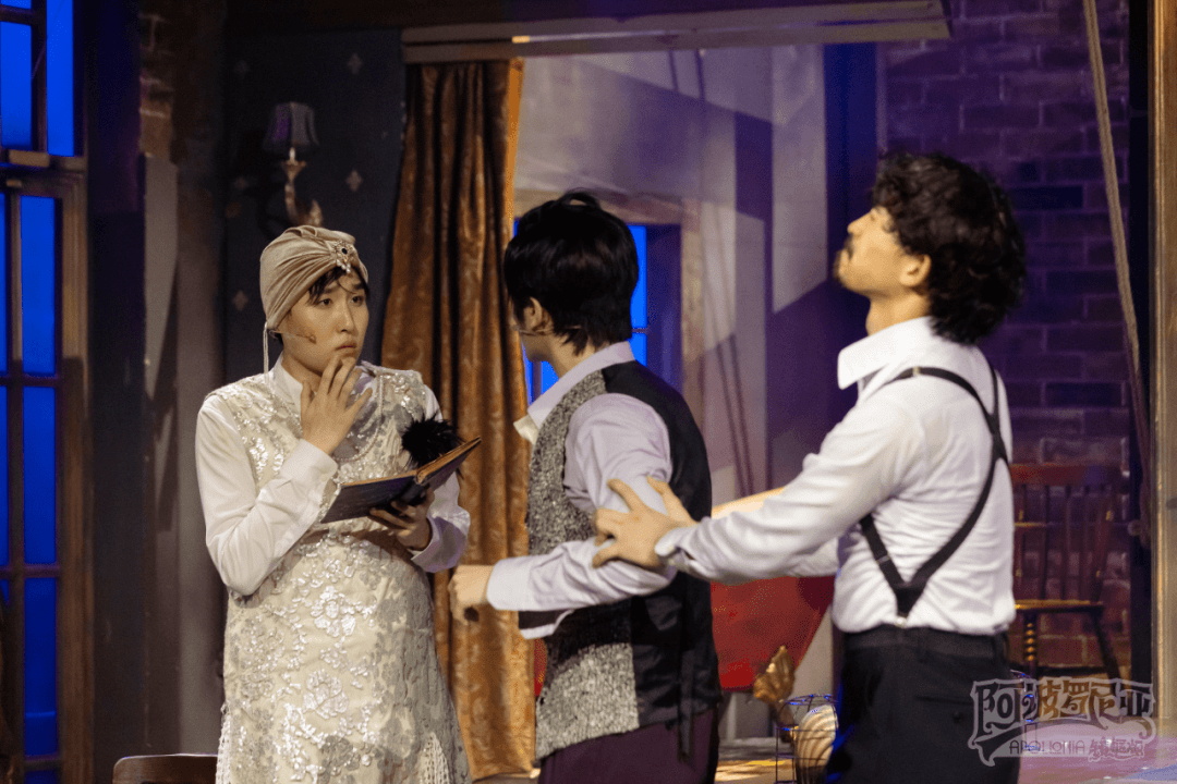 图 | 音乐剧《阿波罗尼亚》镜框版往期剧照 01 3个男人1台好戏 带你进入轻松解压的生活避难所 绝妙编排的三个故事中的每位演员都身担着一人分饰多角的任务,不拘泥于性别、位置、年龄,在「阿波罗尼亚」里展示了12个角色的多样反转魅力。