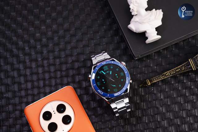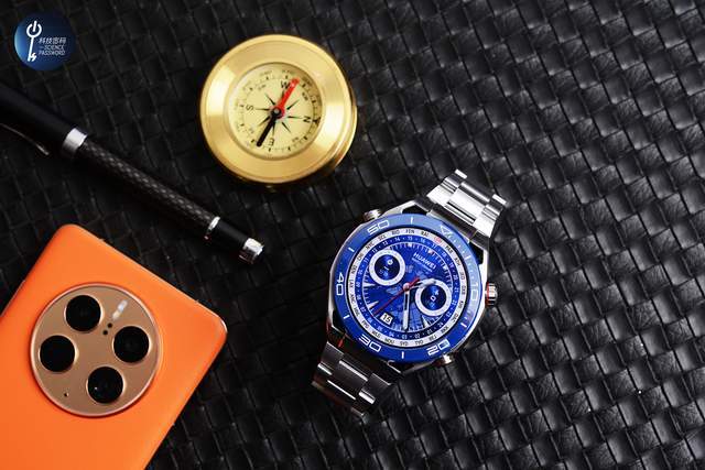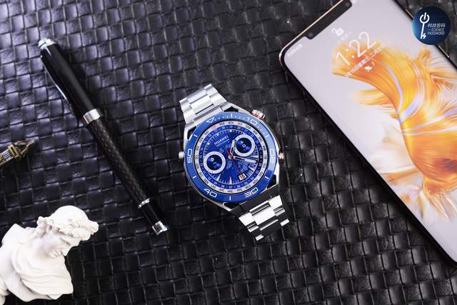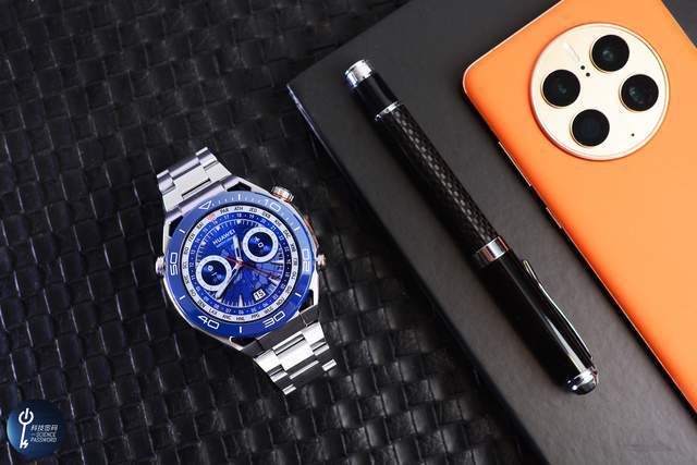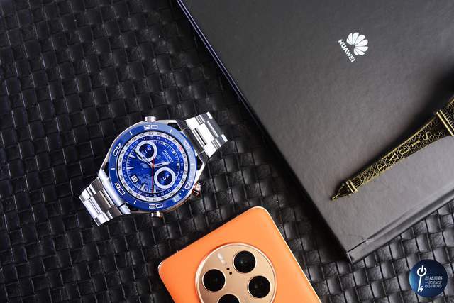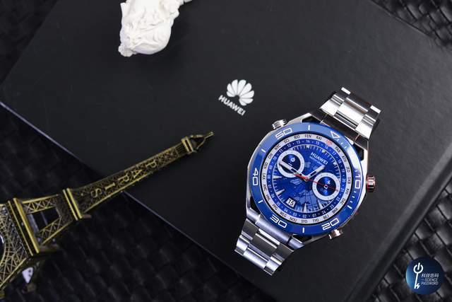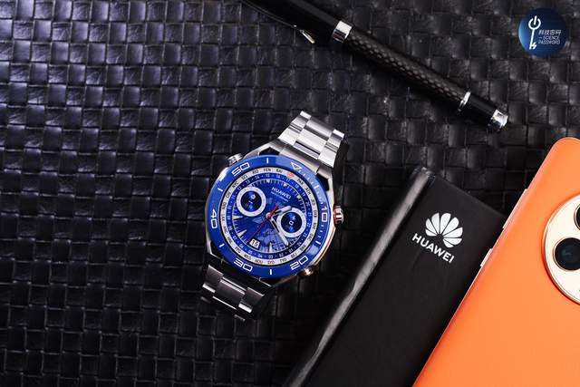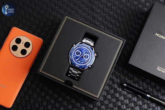 我们拿到的是华为WATCH Ultimate 特殊巨匠系列的纵横海洋款,当我们翻开盒子,就能看到一款精致、高雅、大气的智能手表静置于其中,深蓝色的表盘尤为亮眼,像极了大海的蓝。