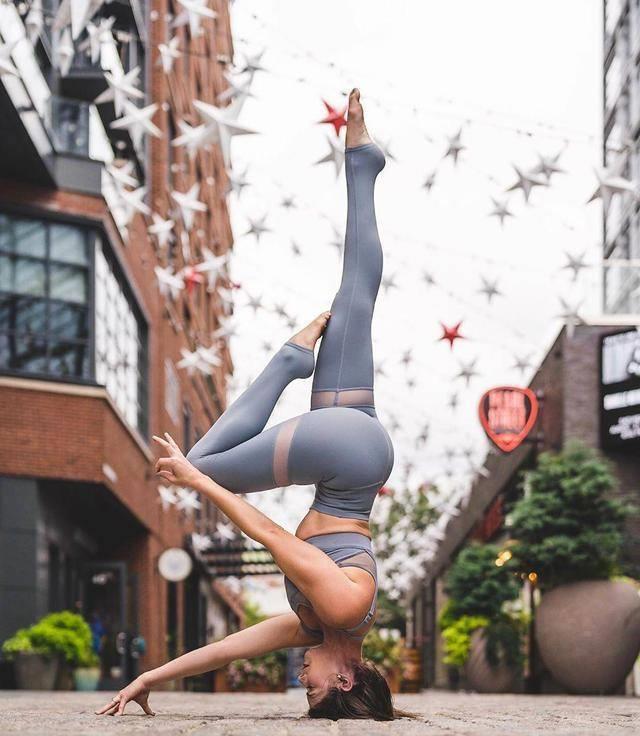 两臂伸直,慢慢弯曲以支撑全身重量,双腿在空中坚持稳定,弯曲一只腿的膝盖靠近肘部,眼睛看向空中,坚持呼吸,留意脚背松紧站起来。 这个动作需求两个人的相互配合。调整自己和墙壁之间的距离。整个人倒立,两条腿撑在墙上。同时,臀部轻轻向后坐,固定在头顶正上方的位置。腿与空中垂直。
