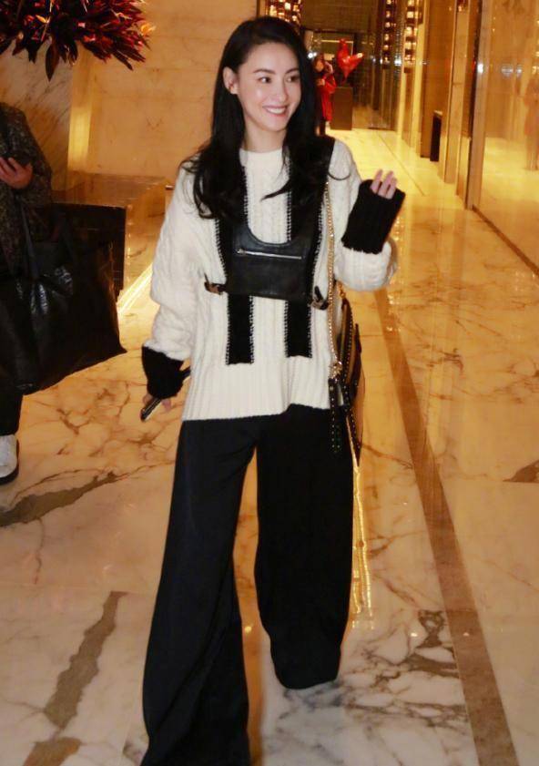 下半身搭配超长款黑色阔腿裤,将她的双腿拉长到了圆满的状态。她可谓美肌大长腿的代表。她走起路来,带着强大的自信和气势。黑白的碰撞也让整体愈加调和。