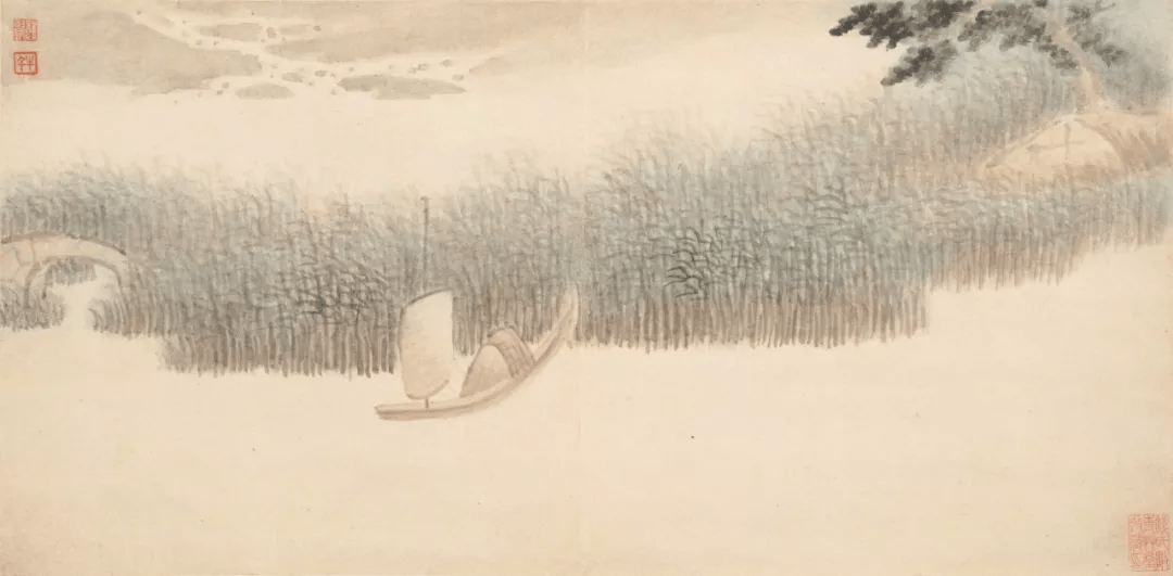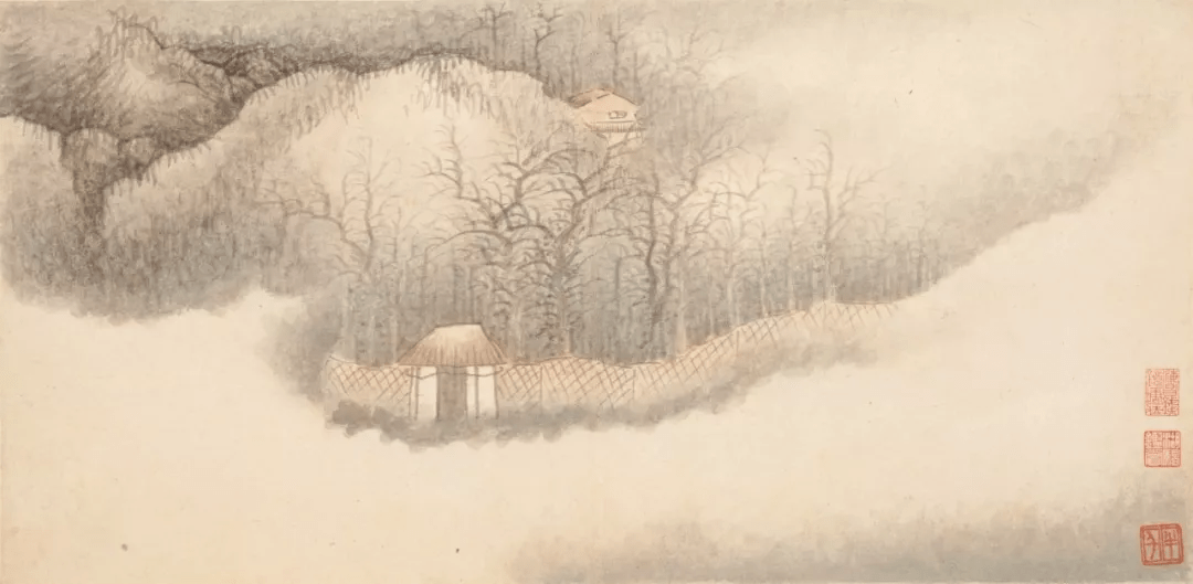 龚贤在自己58岁所作《云山图》册页上题道:“余弱冠时见米氏云山图,惊魂动魄,殆是神物,几欲拟作,而伸指吮毫,竟不能下。何以故?小巫之气缩也。历经四十年,而此一片云山常悬之意表,不意从无意中得之。乃知读书养气一定非画苑家之急事也。余尝整天作画,而画理穷。或经时间作,而笔法妙。此唯学道人知之。余于此不独悟米先生之画,而亦能够悟米先生之书法也。欲得米先生之书画者,必米先生其人然后可,余于此又复瞠乎后矣。”冰冻三尺,非一日之寒。40年的揣摩、酝酿,方有此无意中的顿悟!由此可见龚贤关于传统的敬畏与忠实。还有一种有趣的现象,就是龚贤在追仿前辈的过程中,忽然间发现自己曾经超越了前贤:“余荒柳实师李长蘅,然后来所见长蘅荒柳皆不称心,岂余反过之耶?而今后仍欲痛索长蘅荒柳图一见。”(美国大都会艺术博物馆藏《龚贤山水册》之一自题语)长蘅即李流芳,“画中九友”之一。龚贤说的是大实话,今天我们比较两人的画柳时,差距是明显可见的。龚贤关于传统的继承,可概略为:董巨——二米——倪黄——沈文——董其昌。这是江南山水画的一大致系,从元代以来,主宰着中国画坛。这也是龚贤所认定的“正派”,龚贤基本上接受了董其昌“南北宗论”的观念,并贯彻于其艺术理论。