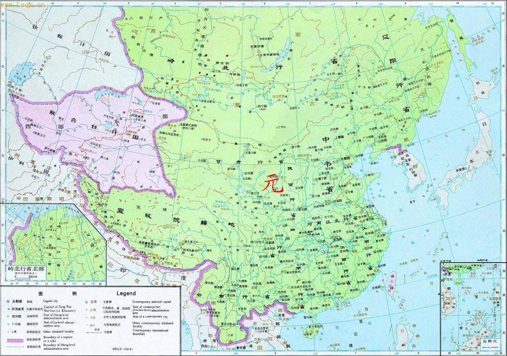 铁木真 嘉定十五年(1222年),成吉思汗在占领区置达鲁花赤监治。嘉定十六年(1223年),还撒麻耳干驻冬,次年起程还国。 宝庆二年(1226年),成吉思汗出征西夏。 宝庆三年(1227年)夏历七月十二日,成吉思汗病崩,西夏亡。成吉思汗临崩提出联宋灭金的战略。大皇后孛儿台生子四人:长子术赤,为钦察汗国诸汗之祖;次子察合台,为察合台汗国诸汗之祖;第三子窝阔台,蒙古第二代大汗(元太宗);第四子拖雷,后人为元代和伊利汗国皇室。忽兰皇后生一子阔列坚,后嗣入元封河间王。崇祯八年(1635年)蒙古帝国被后金消亡。 端平元年(1234年),蒙古皇帝窝阔台召开诸王大臣会议,决议继承成吉思汗的事业,继续西征。窝阔台派兵分别攻打波斯(今伊朗)和钦察、不里阿耳等部,基本上降服了波斯全境。端平二年(1235年),由于进攻钦察的军队受阻,窝阔台决议派强大西征军增援,术赤之子拔都、察合台之子拜答儿、窝阔台之子贵由、拖雷之子蒙哥以及诸王、那颜、公主驸马的长子参与这次远征,由拔都总领诸军。次年,诸军会师西征,进攻位于伏尔加河中游的不里阿耳,大将速不台降服不里阿尔。嘉熙元年(1237年),蒙古诸军进攻钦察,蒙哥斩杀其大将八赤蛮,里海以北地域被蒙古军队占领。拔都率军大举入侵俄罗斯,嘉熙元年(1237年)底占梁赞、莫斯科等14城,嘉熙二年(1238年)2月攻陷弗拉基米尔,次年又攻陷基辅。嘉熙四年(1240年),蒙古军队进攻孛烈儿(今波兰)、马扎尔(今匈牙利)。淳祐元年(1241年)4月,蒙军攻占克拉科夫、里格尼察等城,大掠摩拉维亚等地。拔都亲统三路大军大败马札儿军,其国王逃走,蒙古军队攻掠亚得里亚海东岸及南欧各地。这年年底,窝阔台驾崩之讯传到军中,拔都率军从巴尔干撤回伏尔加河流域。拔都率本部以撒莱为都城,在伏尔加河畔树立了钦察汗国。 元帝国 咸淳七年(1271年),成吉思汗之孙忽必烈在大都(今北京)树立起元王朝,从此,北京才逐步成为中国尔后近七百年的政治、经济、文化中心。景炎元年(1276年),元朝发兵攻占南宋都城临安(今杭州),占领中国全境。 尔后,元朝曾两征日本、两征安南(今越南北部)、两征缅甸,先后使高丽(朝鲜)、缅甸、占城(柬埔寨)、安南(越南)等地成为元的属国。