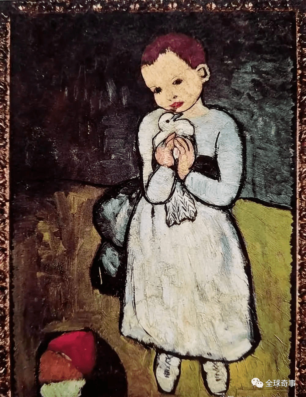 2012年,约4130美圆,买下毕加索 ,《抱鸽子的孩子》