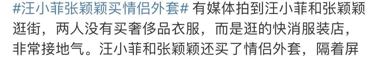 近日,有媒体曝光汪小菲和张颖颖一同逛街买情侣服,两人并没有花大钱去买奢侈品牌,而是走进了某平价店铺。 两人同行举措引发网友热议,有人调侃,小菲对自己这么俭省却花几百万给前妻买奢侈品啊?还有网友指出,该评价品牌湾湾地域的代言人是大S的妹妹小S,这是又给徐家姐妹创收了?