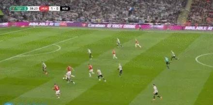纽卡斯尔一开端打得比较主动,右路的特里皮尔和左路的马克西曼不时制造要挟。 率先破门的是近期状态极佳的曼联。第31分钟,纽卡斯尔前场攻势,右路传中。三马从身后得球,灵巧地暴扣达洛特。小角度射门被德赫亚扑出,随后吉马良斯补射高出横梁。