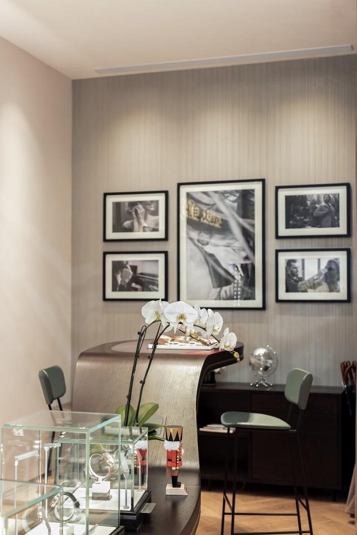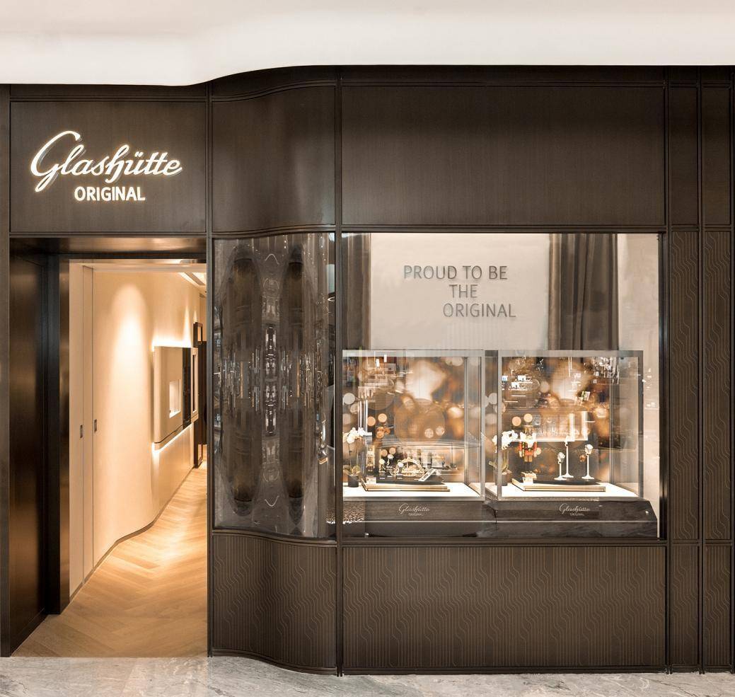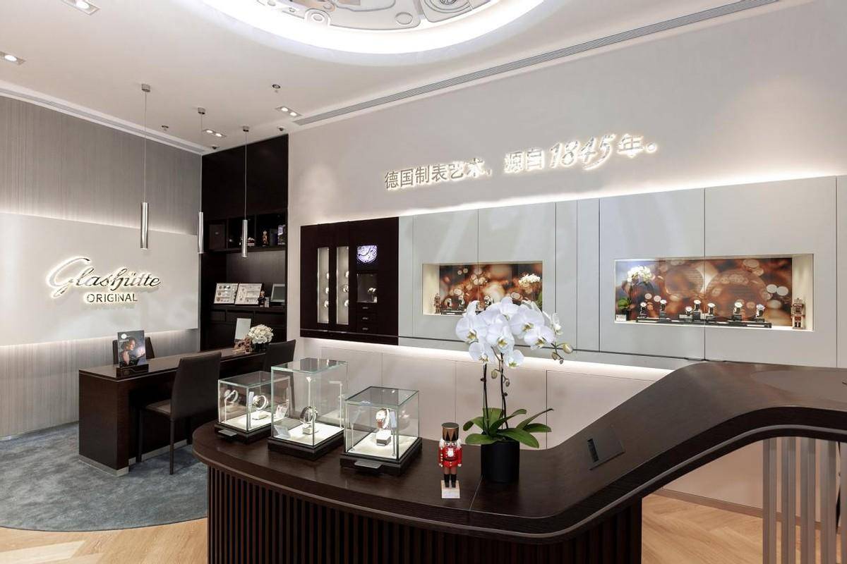 全新专卖店的设计持续了品牌一向的德式美学理念,以冷静稳健的深棕色为主颜色,与明亮的暖色灯带相互映托,中央流线型的腕表鉴赏台则进一步构建出品牌典雅的气质,独具匠心的设计彰显格拉苏蒂原创源远流长的深沉历史。店铺顶上饰有品牌最具代表性的双G标记与自制机芯镂空图案,充沛展示制表作风的同时,更成为视觉焦点所在。步入店中,能够观赏到品牌五大经典系列产品和明星产品,见证着德国制表艺术的地道演绎。