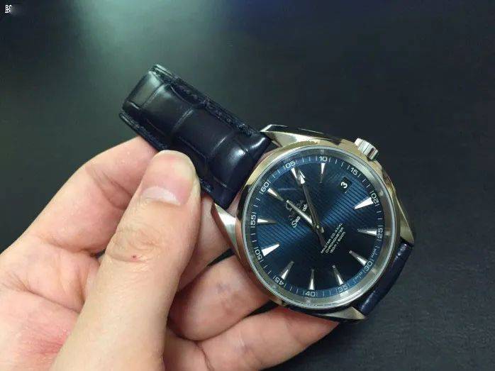 这款美度表壳运用真空离子电镀技术,使原本平平无奇的精钢表壳的质感得到明显提升。灰黑色的盘面与玫瑰金色构成张弛有度的视觉感受。PVD玫瑰金的蝴蝶扣设计更为腕表添加了一丝文雅气息。 欧米茄海马150米 欧米茄海马腕表是品牌当中最具有特征的腕表之一。表盘的蓝色颜色十分文雅,标记性“柚木概念”阳光射线打磨的垂直纹理,十分有质感。