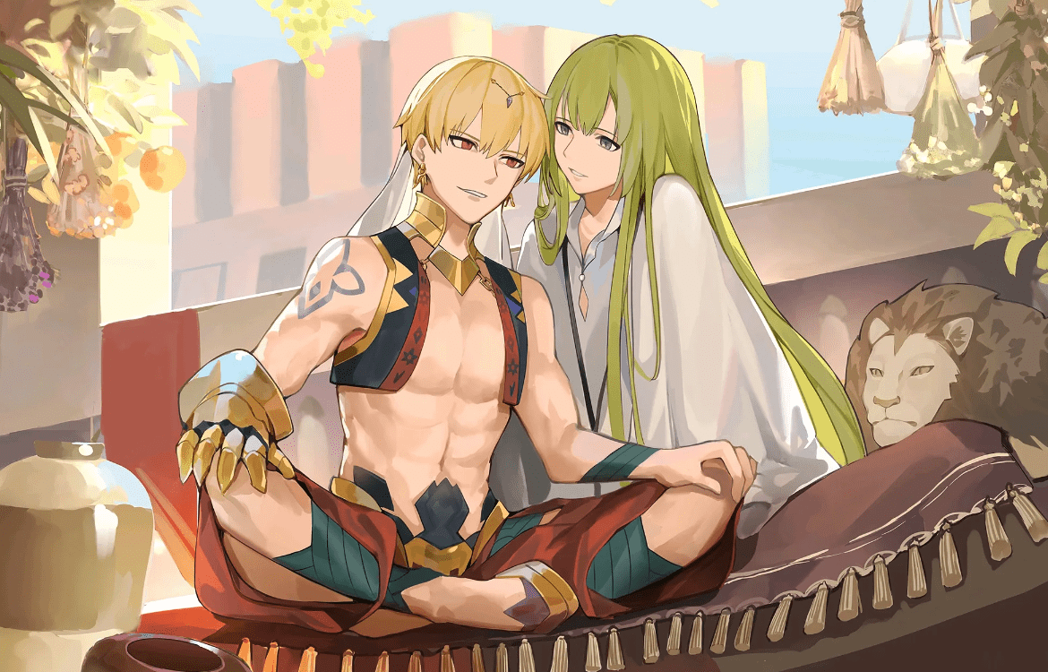 很多历史或者神话中的人物形象,都在游戏中被猖獗魔矫正。好比《FGO》中的金闪闪,就把古代传说中的乌鲁克之王吉尔伽美什,塑构成了性格飞扬专横的金闪闪。他的好基友恩奇都也成了一头青色长发的俊美少年。