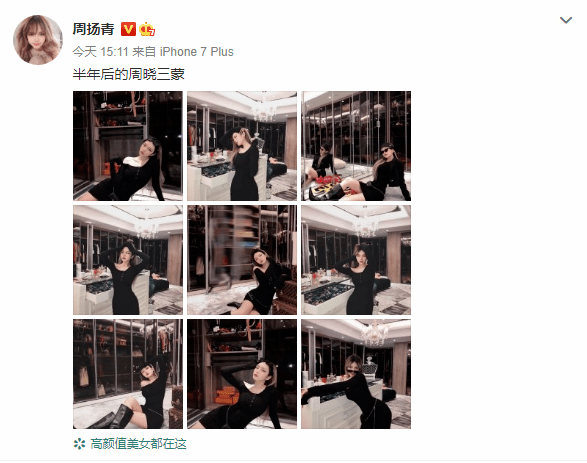 12日下午,周扬青再次更新动态,并穿上了半年前那件修身裙一展诱人魅力。她还写道:“半年后的周晓三蒙 ”,把自己的名字拆开写,周扬青要不要这么搞笑啊,哈哈哈。