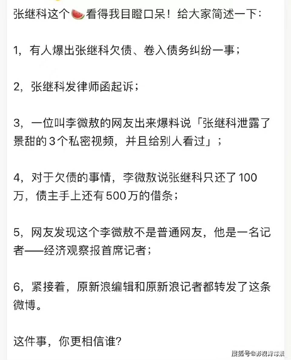 假如网友“匿名爆料”某个明星的丑闻,有可能是假的,只是为了蹭热度。但是有一个大V实名爆料张继科,而且不是营销号,不是狗仔,而是《经济察看报》的首席记者李微熬。李微熬是有记者证的,当记者不容易,他不可能拿自己的出路开玩笑。此外,还有原新浪的编辑、记者也都发文爆料了,阐明张继科的这些丑闻,很有可能是真的。