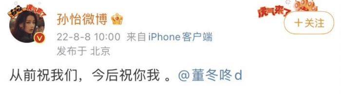 事情湖南去年3月8日,董子健和孙怡忽然发文,一个说“从前祝我们,今后祝你我”,一个说“咱都好好的”,以此来告别对方。