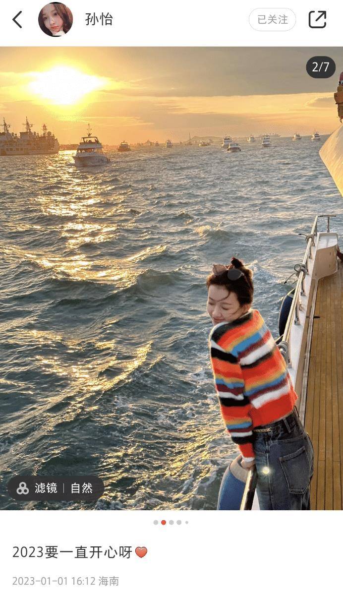 其实这期间,孙怡也晒出了很多自己在三亚度假的照片。他身穿条纹毛衣,戴着墨镜,拍摄大海、游艇和海上落日。景色更是美不胜收。