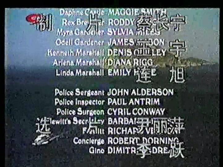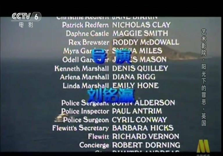 【翻 译】梅笑寒 【译制导演】刘铭瀛 【录 音】目佳 【技 术】王凤云 赵畅宇 【制 片】郭华 【监 制】贾琪 【配音演员】 彼德·乌斯蒂诺夫 饰 波洛 配音 陆建艺 简·伯金 饰 克莉丝汀·雷德芬 配音 扈茜茜 尼古拉斯·克莱 饰 帕特里克·雷德芬 配音 徐光宇 黛安娜·里格 饰 阿伦娜·马歇尔 配音 李世荣 詹姆斯·梅森 饰 奥德尔·加德纳 配音 党同义 罗迪·麦克道尔 饰 雷克斯·布鲁斯特 配音 金永钢 西尔维娅·迈尔斯 饰 玛拉·加德纳 配音 林兰 玛吉·史密斯 饰 达芙妮·卡索尔 配音 张欣 Colin Blakely 饰 霍勒斯·布拉特爵士 配音 白玉林 Emily Hone 饰 琳达·马歇尔 配音 林兰 Richard Vernon 饰 弗卢伊特先生 配音 党同义 Barbara Hicks 饰 弗卢伊特的秘书 配音 扈茜茜