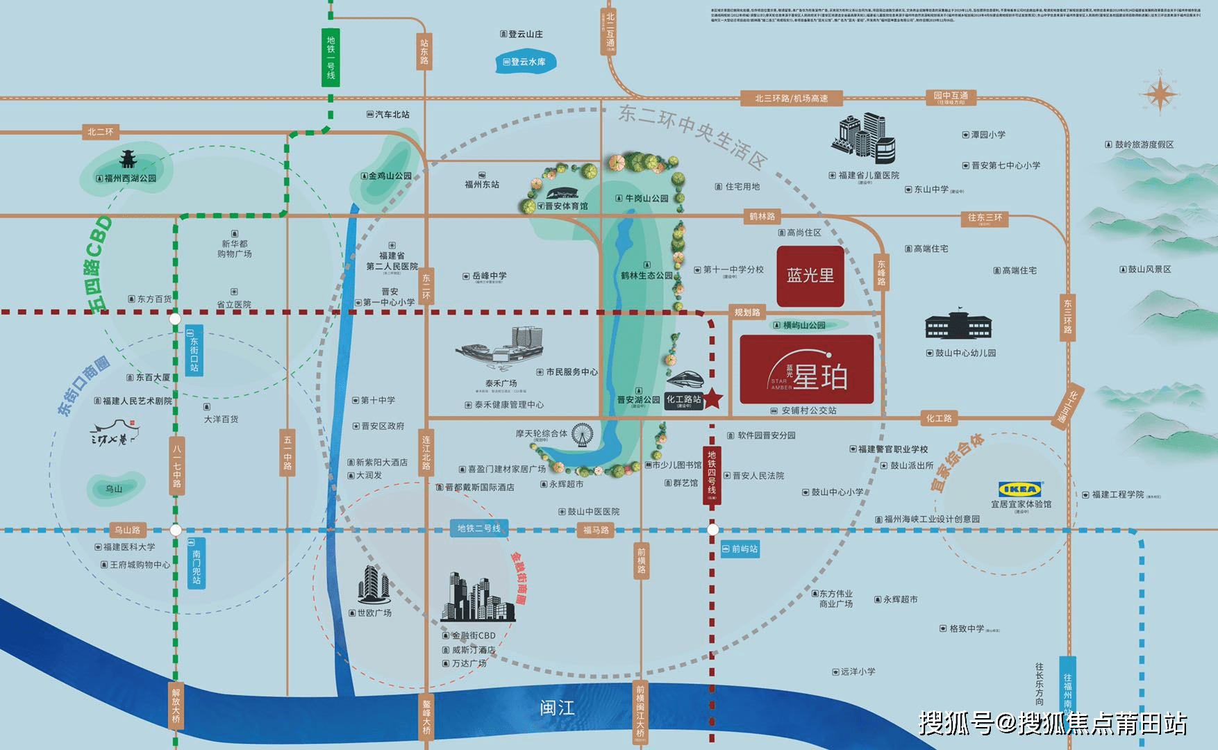 【品牌实力】全国地产21强蓝光地产,千亿房企,上市公司,30载60余城400多个项目;黑钻系、芙蓉系、雍锦系、未来系、公园系五大产品系享誉全国。 <项目周边资源> 【交通资源】地铁4号线 | 距地铁4号线化工站(树立中)仅50米距离,且地铁4号线与1、2号地铁线(已通车)、3号线、5号线、6号地铁线(树立中)均有重合站点,未来可完成无限换乘;三横两纵 | 化工路、鹤林路、横屿路、谭桥路,前横北路,构成三横两纵的棋盘格状路网规划结构,出口就是安铺村公交站,畅享方便交通;接“二”连“三” | 三环互通、二环互通,两条快速通道,快速通达连江(北二通道)、长乐等福州八县,直上机场高速;
