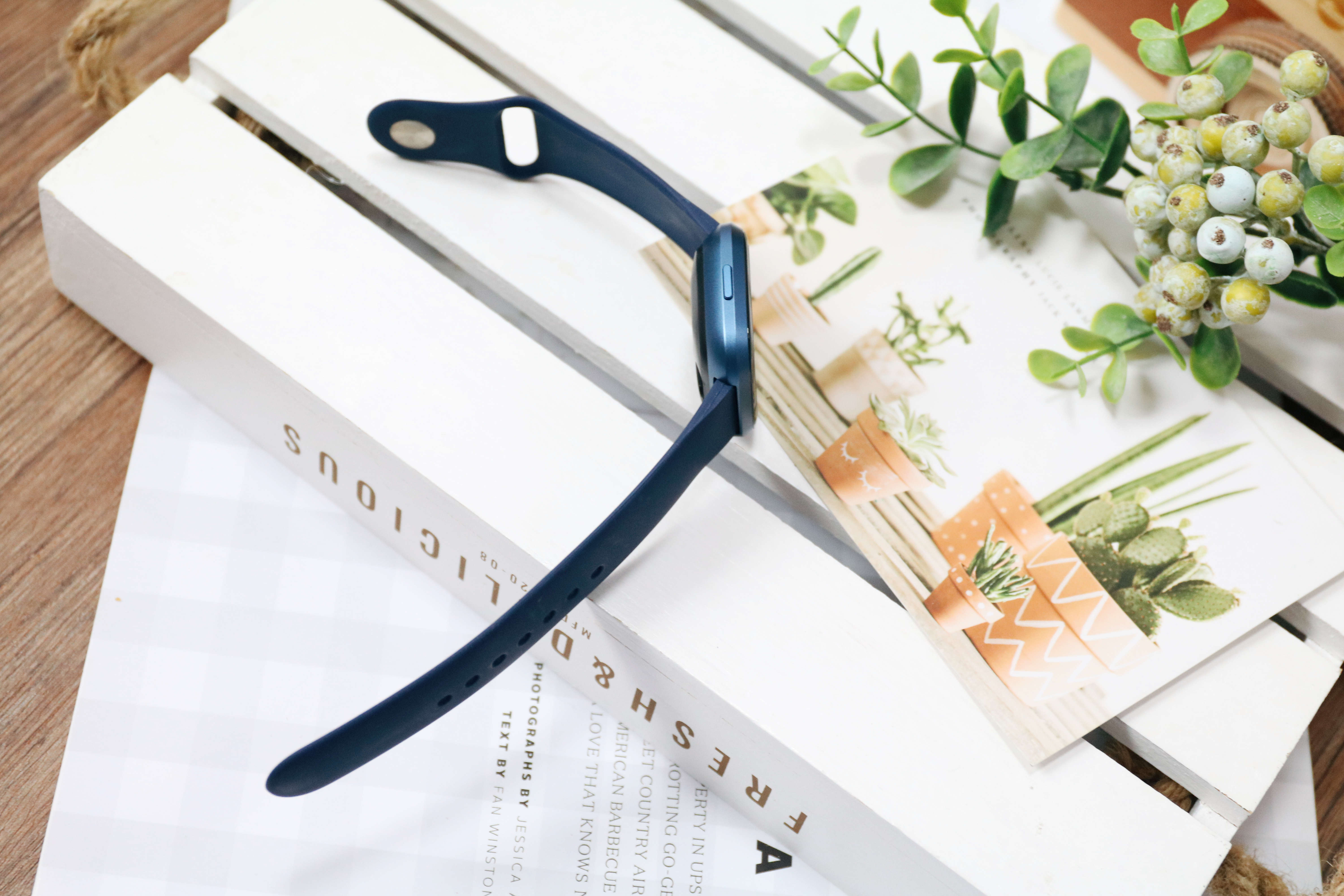 克莱因蓝配色的硅胶表带不管是颜值还是触感都很哇塞,戴在手上好看又舒服。表带的卡扣加入了一些小心机。