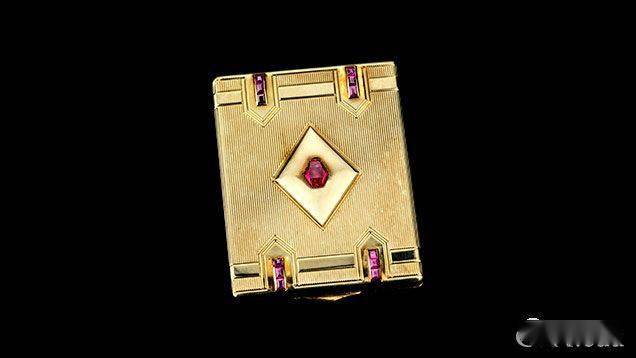 女演员 Eva Gabor(伊娃·加博尔)的镶有合成红宝石的黄金粉盒。由 Kazanjian Foundation 的好莱坞系列友情提供。摄影:Orasa Weldon(奥拉沙·韦尔登)/GIA 展品包括 Eva Gabor(伊娃·加博尔)缀有红宝石的口红盒、梵克雅宝的粉盒和笔记本托架、Mary Pickford(玛丽·皮克弗)和 Gloria Swanson(格洛丽亚·斯旺森)的粉盒。 Ottaway(奥特维)说,好莱坞黄金时代的粉丝来 GIA 参观“好莱坞珠宝”展时,定会满心欢喜。