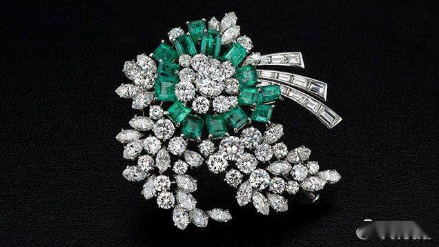 这颗镶有铂金的钻石及祖母绿胸针含有钻石约 15 克拉,祖母绿约 5 克拉,曾经属于 Faye Dunaway(费·唐娜薇)。由 Kazanjian Foundation 的好莱坞系列友情提供。摄影:Orasa Weldon(奥拉沙·韦尔登)/GIA 根据 Penny Prodow(佩尼·普罗多)、Debra Healy(黛布拉·希利)和 Marion Fasel(马里昂·法泽尔)撰写的“Hollywood Jewels: Movies, Jewelry, Stars”(《好莱坞珠宝:电影、珠宝、明星》)所述,一旦找到一位潜在女主角,就有一个团队准备将她变成明星。这包括改变她的容貌、住所以及社交生活。 书中写道:“花这么多钱在一个明星身上,让她戴上珍贵的珠宝,这不是挥霍,而是投资的一部分。”