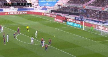 第61分钟,又是朗格莱的失误,让巴萨在下半场的努力毁于一旦。他在禁区内拽倒拉莫斯,主裁判查看回放后判点。