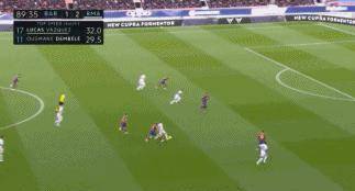 第5分钟,本泽马送出直塞,巴萨中卫朗格莱严重失位,巴尔韦德突入禁区轻松打入单刀!皇马1-0领先!