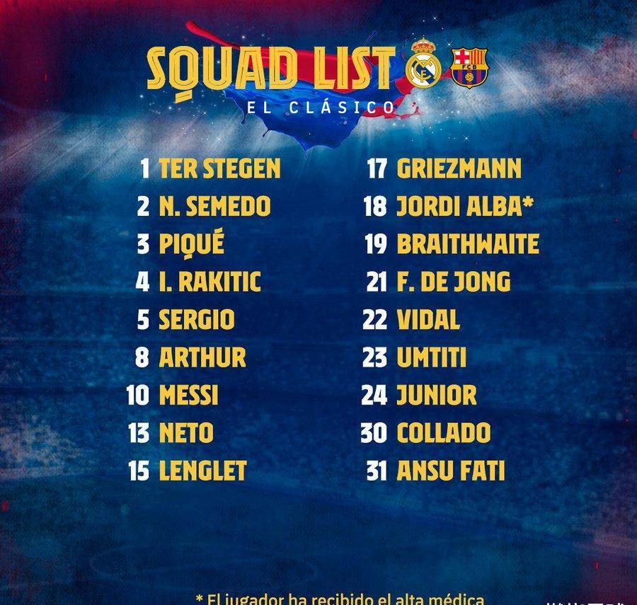 北京时间2月29日,巴萨公布了国家德比与皇马一战的18人大名单,阿尔巴火线复出,皮克也及时摆脱伤病。梅西和格列兹曼领衔大名单,苏亚雷斯和登贝莱则继续因伤缺席。