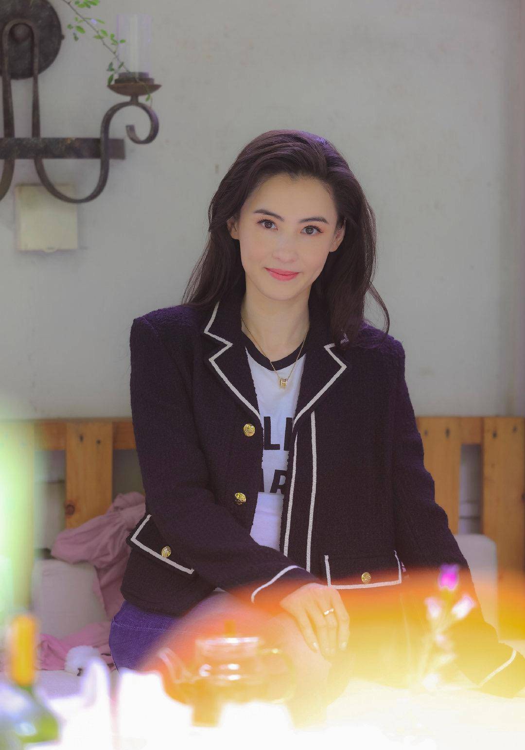 短款的外套设计采取金色的纽扣,增加了服装的华丽感和端庄感,内搭白色T恤青春而秀丽,愈发显得张柏芝的颜值十分精致靓丽。