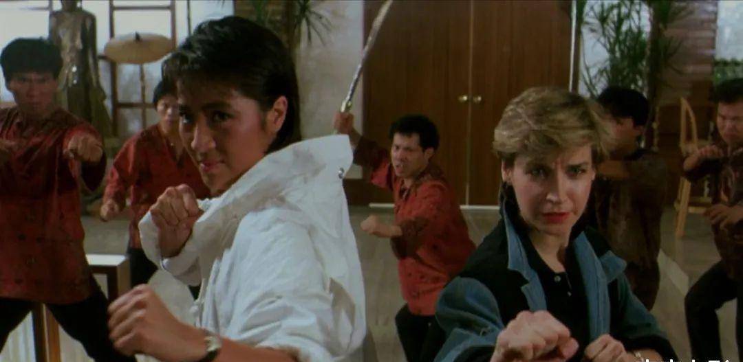 最大牌的还是罗芙洛,她曾经连续五年赢得世界空手道套路组和器械组冠军(1981年到1985年),片中展现了扎实的武术功底,从力度到难度都与洪家班武师不相上下。