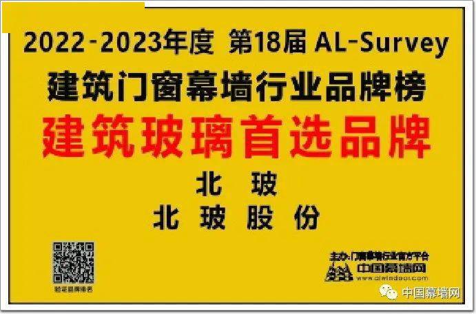 天朗气清,惠风和畅,转眼我们迎来2023年的春天。回顾过去的2022,“十四五“规划有效推进 “双循环”经济模式深入发展,党的“二十大”盛大召开,门窗幕墙行业正齐心协力、戮力同心向着“中国式现代化”大步前行,在新百年奋斗征程中,我们正开启着一个伟大的新时代。 乘风逐浪,奋楫笃行|2022年3月11日,由中国建筑金属结构协会铝门窗幕墙分会指导的“超级幕墙工程评选”名单正式发布,同期,“第18届AL-Survey2022-2023暨中国门窗幕墙行业年度大型读者调查活动”首选品牌榜单也正式揭晓,门窗幕墙行业各大知名品牌积极参与,以高质量发展为背景,以“追光而行,品牌重塑”为主题打造出一场高水准的品牌盛宴。 AL-Survey助力行业智慧转型,赋能创新! 第18届AL-Survey2022-2023中国门窗幕墙行业大型读者调查暨“首选品牌”推荐活动,经过数月专家评审与业内投票,最终甄选出优秀的品牌与企业,引领整个行业向着高质量发展之路大步前行。北玻股份作为超级建筑玻璃的代表企业,一直秉持匠心匠艺,以“安全零自爆,视觉无缺陷”为目标,坚持创新与研发,与时俱进,无惧艰难,成功蝉联“建筑玻璃首选品牌”大奖。