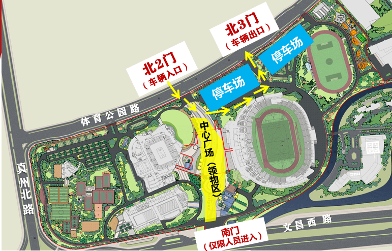 马拉松装备发放期间,所有自驾车辆从体育公园北二门进入园区,将车辆停至停车场,体育公园南门不对机动车开放,谢谢合作!