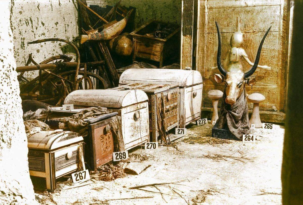 【珍宝室里的各种文物】霍华德·卡特,英国考古学家和埃及学的先驱,他是图坦卡蒙墓地的发现者。为了找到图坦卡蒙墓地,霍华德·卡特在埃及帝王谷找了15年,把帝王谷翻了遍,最终于1922年11月发现了图坦卡蒙墓地入口,这座沉睡地下3000多年的墓地终于被发现。