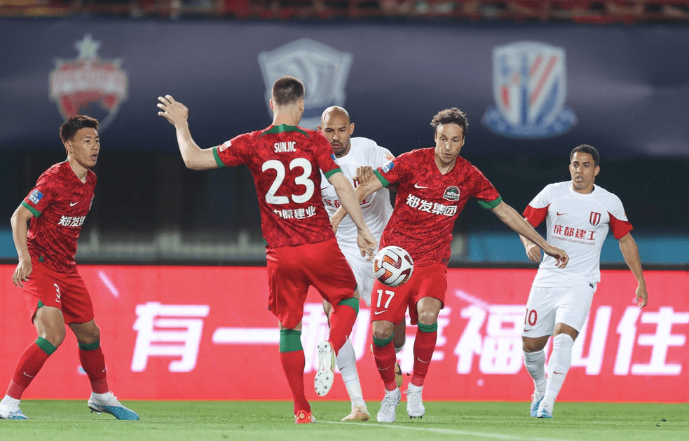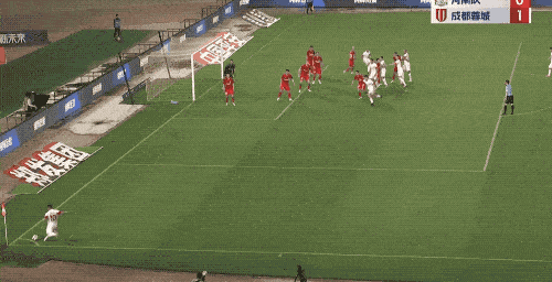 第39分钟,蓉城的角球制造威胁,可惜队友的头球顶得有些正,被王国明没收。