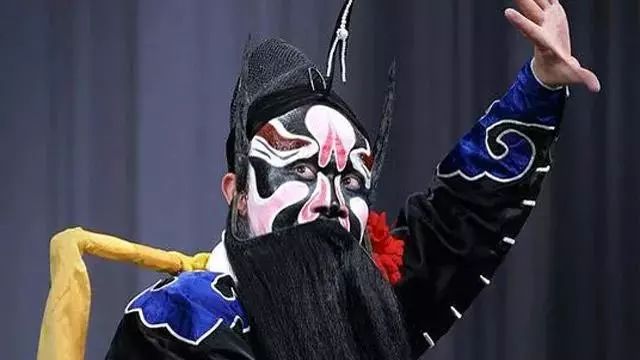 程咬金 · 绍剧《薛刚反唐》· 骆继强 相貂 又称相纱,为宰相专用。帽形近方,前低后高,左右插长翅,纯黑色。另有花相貂,缎面绣花,有香色、古铜色、紫色几种,为老年宰相所用。
