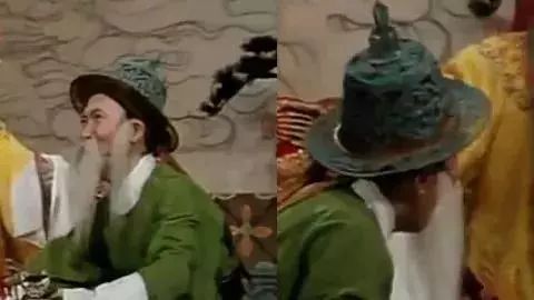 王延龄 · 京剧《秦香莲》· 陈少云 汾阳帽 俗称“文阳”,用于权势显赫的宰辅。外形与相貂基本相同,金底龙纹,缀有绒球和珠子,两旁为金色如意翅。