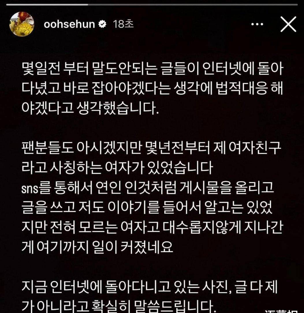 世勋本人也在IG发文:“这几天,网络上流传着诽谤性的言论。出于纠正他们的想法,我想采取法律行动。粉丝们也知道,几年前有一个女人谁冒充我是女朋友,在社交媒体上假装是我的女朋友并上传文章我也不知道这个故事,但是一个我根本不认识的女人,所以我现在没有认真对待事情发展到现在,我明确告诉大家,网上流传的照片和文章都不是我的。”