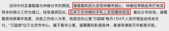 但林峯告诉媒体,他们俩已经分手两个月了,而且自己曾经是真心的,甚至为了潘霜霜失魂落魄……