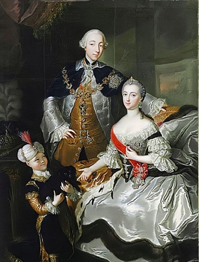 西班牙国王菲利普二世画像伊丽莎白一世这种以自己为诱饵,周旋国家之间,简直是一种危险的豪赌,虽然一度出现危机,但凭着她的智慧与能力,终其一生,稳操胜券。在她的统治之下,英国出现了令后人无限缅怀的“黄金时代”。后世民众公选“100名最伟大的不列颠人”中,伊丽莎白一世位列前十名,可谓实至名归。 全欧洲都将匍匐在我的脚下 众所周知,在俄国的历史上,只有两位皇帝被冠以“大帝”的称号,一位是俄罗斯帝国的缔造者彼得一世,而另一位就是女沙皇叶卡捷琳娜二世。一位出生于普鲁士普通没落贵族的德国姑娘为何能成为与之八竿子打不着的俄国女皇?这就要从他的远房表哥卡尔·彼得·乌尔里希说起。因为当时俄罗斯女沙皇伊丽莎白未婚而且无嗣,作为彼得大帝的外孙,乌尔里希才有幸被选为俄罗斯皇位继承人。而远在普鲁士的索菲娅被当时的俄罗斯女沙皇伊丽莎白选中为未来皇储的未婚妻,也就是后来彼得三世的妻子。