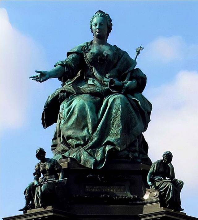 这位集智慧与权力于一身的女王,在1492年4月17日又做出了一个重大决定,为航海家哥伦布提供航海资助。就这样,哥伦布开始了他的海上冒险之旅,最终发现了美洲大陆。在伊莎贝拉与丈夫费尔南的经营下,完成了国土与宗教的统一,西班牙的雏形初现,并使其成为真正意义上的“日不落帝国”。1504年11月26日,这位一生充满传奇的伟大女王走完了自己五十三年的人生之路。 不断生育,联姻外交 提起神圣罗马帝国的哈布斯堡王朝,有人会瞬间想起这样一句经典的话“让别人打仗去吧,而你,幸福的奥地利,结婚去吧!战神马尔斯给别人的东西,爱神维纳斯可以给你。”哈布斯堡王朝就是通过联姻方式,不费一兵一卒,兵不血刃地控制了欧洲多个领地。在鼎盛时期,哈布斯堡王朝统治过神圣罗马帝国、西班牙帝国、荷兰和意大利北部。而这一切都是因为哈布斯堡王朝唯一的女性统治者,一个生育能力极强的女人——玛丽亚·特蕾莎。
