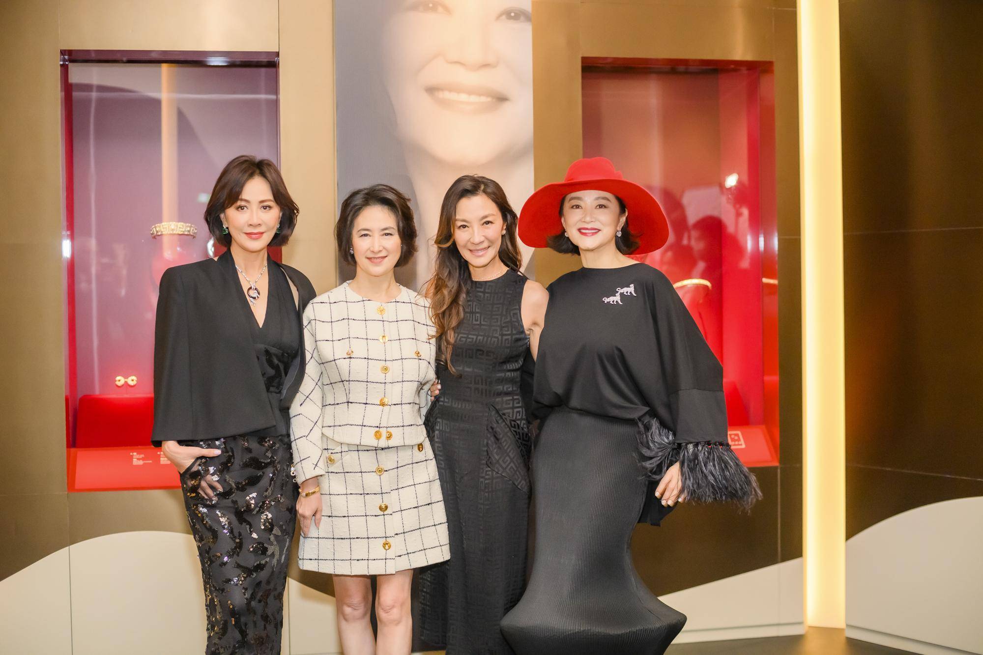 刘嘉玲、何超琼、杨紫琼和林青霞合影。(图片由主办方提供) 据悉,全球首个以女性在卡地亚发展史上的地位和影响为主题的大型展览“卡地亚与女性”将于4月14日起在香港故宫文化博物馆隆重举行。,2023. 在向公众展示时尚之前,卡地亚率先邀请了包括著名演员林青霞、刘嘉玲、企业家何超琼在内的众多热爱品牌珠宝和借藏的收藏家前来观展。郑志刚、郑余雅颖夫妇等多位社会名流也亲临现场。