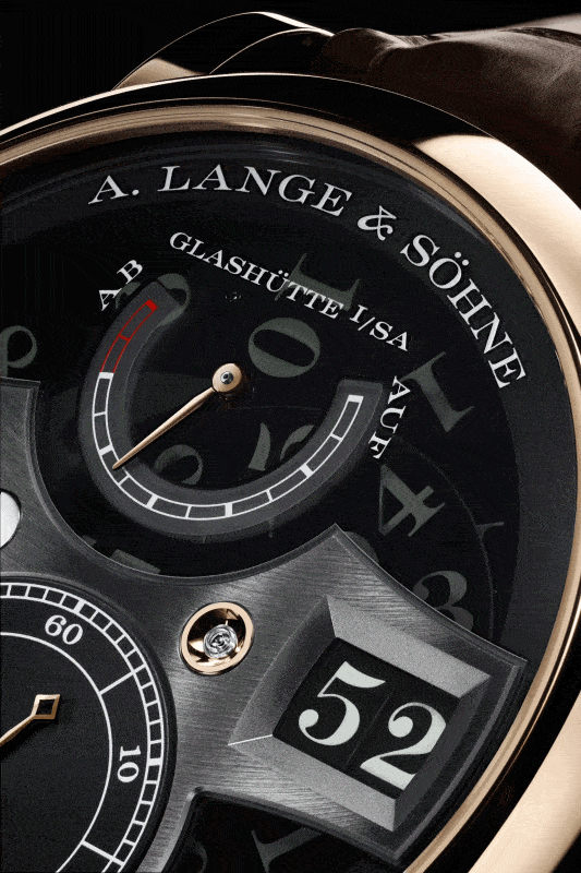很多人会问,朗格“猫头鹰”腕表独特的夜光发光效果,是怎么实现的? 研发“Lumen”表盘时的技术难题,在于为表盘下的夜光物料均匀地“充能”。因为夜光物料上面都是显示设备和机芯零件,被它们遮挡和覆盖。朗格产品研发人员最终找到解决方案——采用覆有半透明涂层的蓝宝石水晶玻璃表盘,容许紫外线穿过。这样可见光的光波传输会减弱,形成高对比度且清晰显眼的表盘。同时,紫外线光波可穿过表盘。如此这般,透过视窗显示的夜光数字能吸收到足够紫外光,从而使其获取光能,在黑暗中散发光芒。