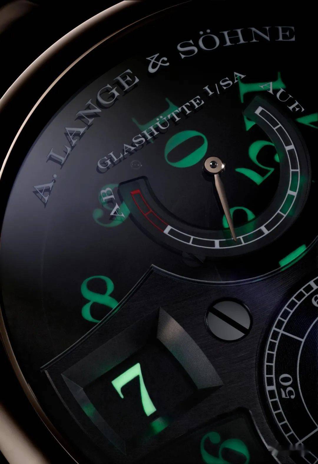▲通过半透明表盘,一定要透光到夜光涂层,让数字在跳窗出现前,先行亮起夜光 所以, 朗格的“猫头鹰”腕表实现了一个很神奇的效果:小时和分钟窗口,每个全新的数字在昏暗光线下跳出显示时,它们都是发亮的。因为这些数字已经通过表盘的透光涂层吸收了光亮和“充好了电”。我们可以想象一下,如果朗格设计师和工程师没有想出这聪明的创意、如果表盘依然是实心的,那么在暗夜,每当数字跳出来时,即使数字本身涂有夜光,也是不会发亮的。因为夜光材质需要提前吸收光亮。