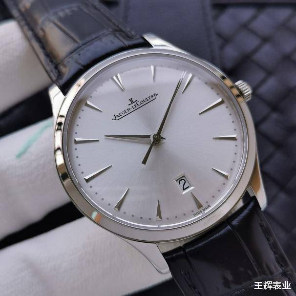 积家超薄大师 积家是顶级制表行业的先驱,对整个行业有杰出贡献。超薄大师更是被尊为圆形腕表的典范,40毫米表径,7.45毫米的厚度,银色的盘面、阴阳太妃针、日历窗口,简约的设计风格,整表自带高级感,搭配皮带,更加贴合手腕。899/1机芯,厚度仅有3.3毫米,动力储备38小时,走时精准可靠。