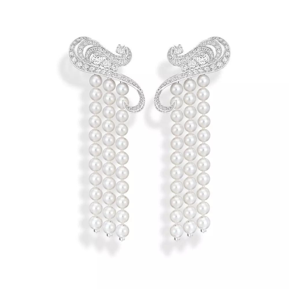 Irresistible Attraction 白金耳坠,by Piaget 镶嵌圆形明亮式切割钻石和 Akoya 珍珠。