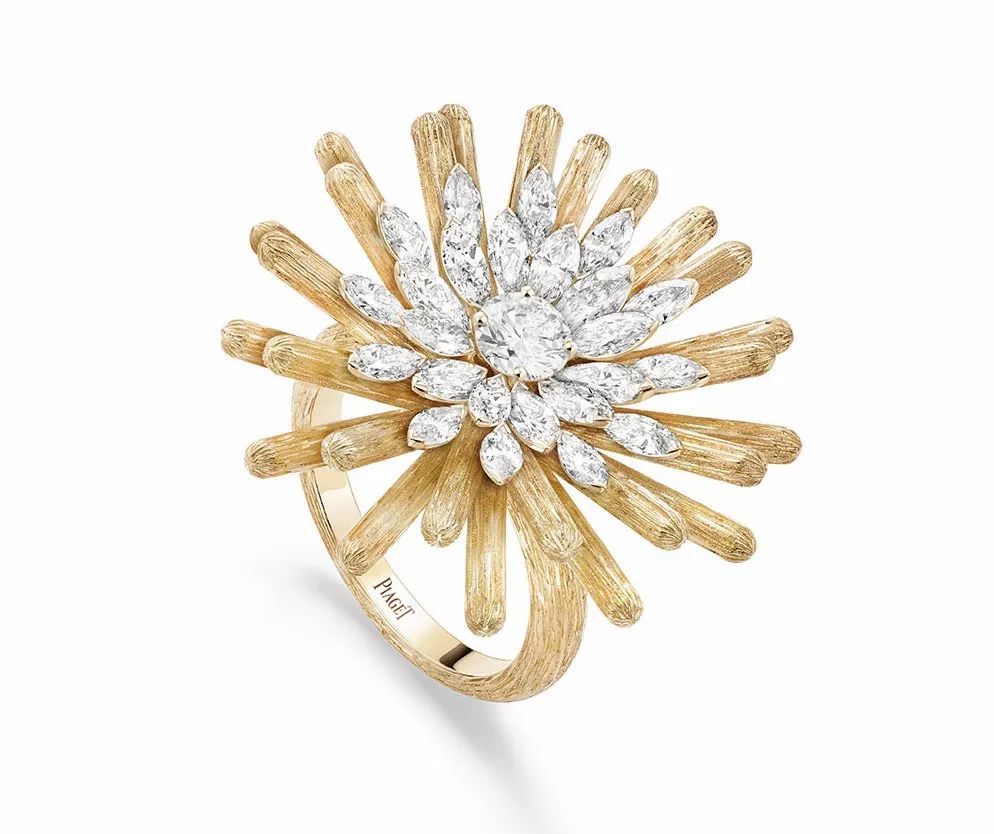 Piaget推出新一季高级珠宝系列——「Golden Oasis」,灵感汲取自广袤无垠的沙漠。新系列共由3组不同主题的珠宝构成——「Play of Lights」呈现荒漠中的太阳与星辰之光;「Native Bloom」以沙漠植物为主要元素;「Desert Minerals」重塑瀑布、海市蜃楼等壮美景观。