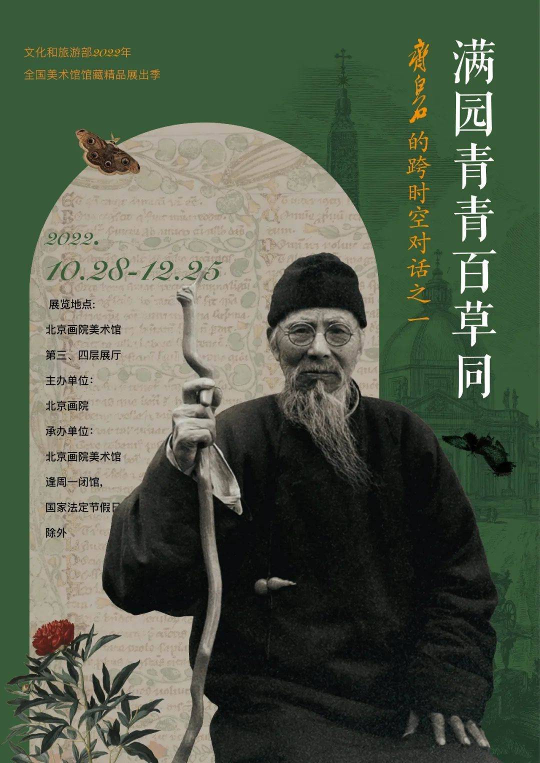 展览的重点为展示奈良县立橿原考古学研讨所珍藏的考古资料,追溯日本的国度展开进程,从接受中国皇帝册封“倭王”来统治“倭国”的时期开端,直至脱离册封体制,从中国学习各种制度和文化后,树立以天皇为中心的古代律令国度“日本”。 满园青青百草同——齐白石的跨时空对话之一 地点:北京画院美术馆 展期:2022年10月28日—12月25日