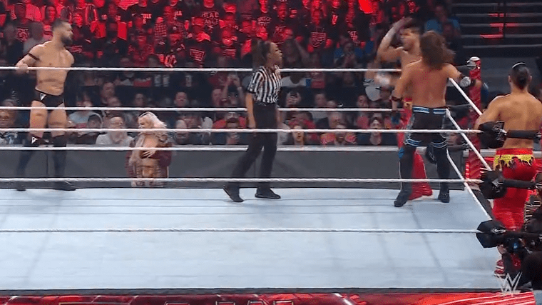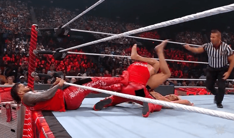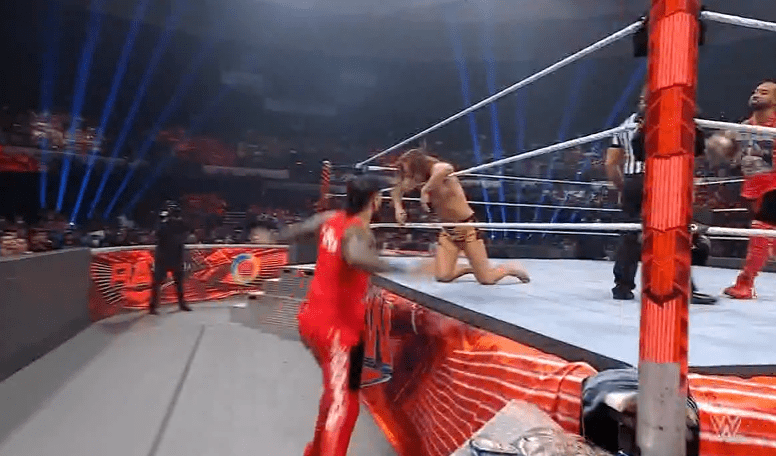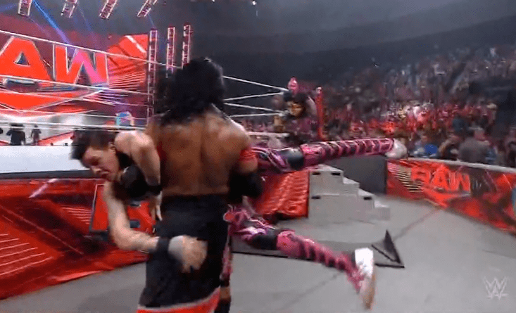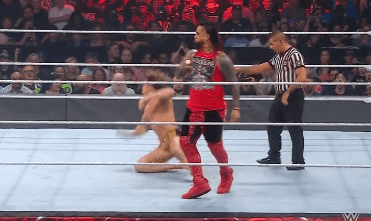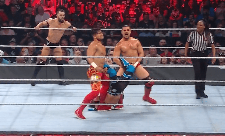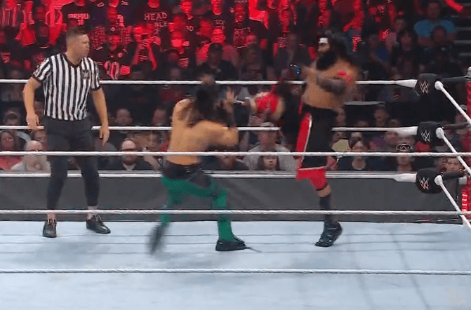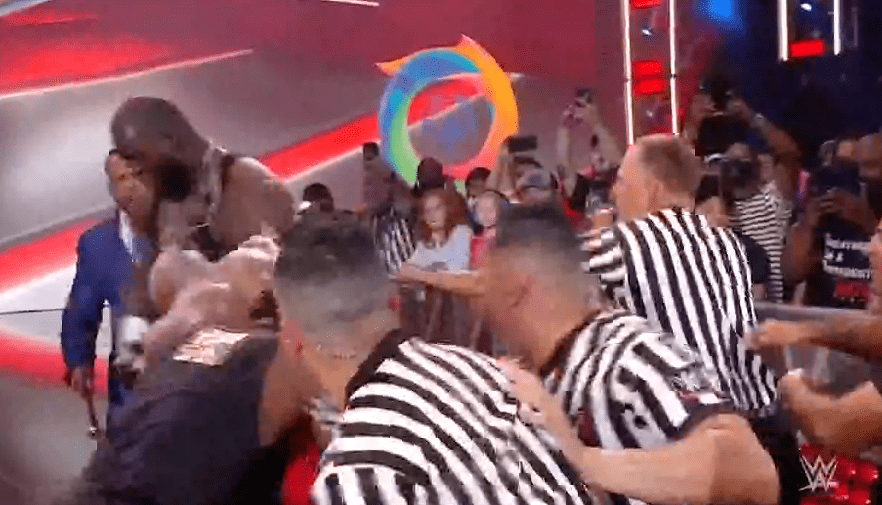 鲍比将奥摩斯踹飞,却遭到场外亚历山大的阻止