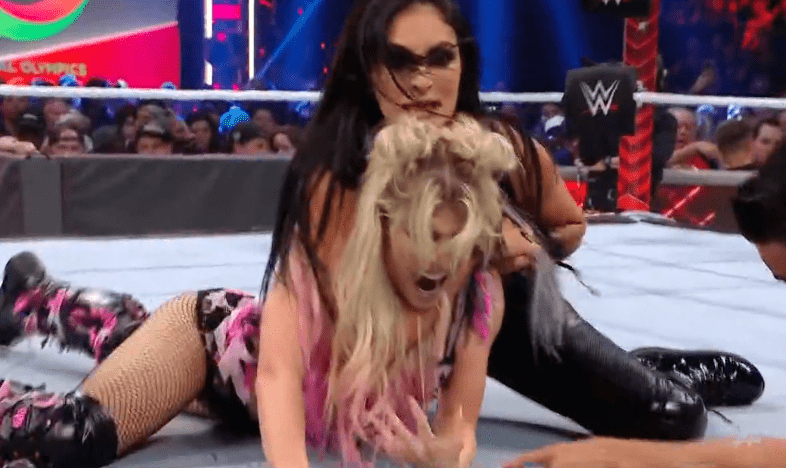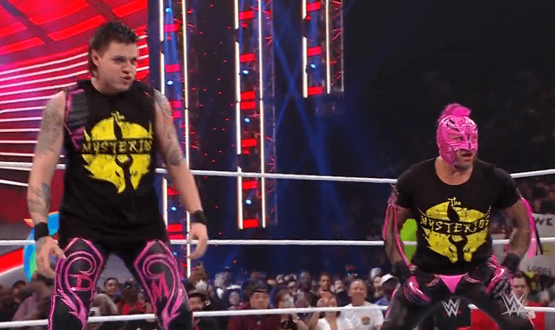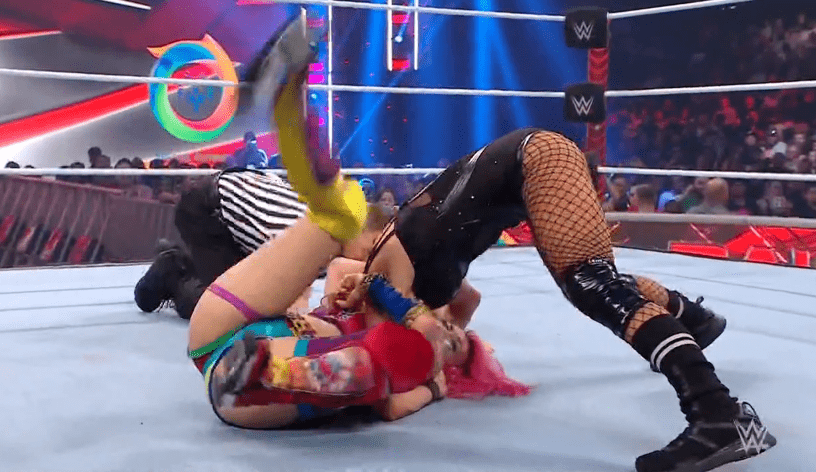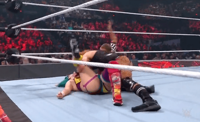 获胜者:AJ斯泰尔斯&芬巴洛尔 丽芙摩根,芬巴洛尔和AJ斯泰尔斯三人正式协作!!十分养眼