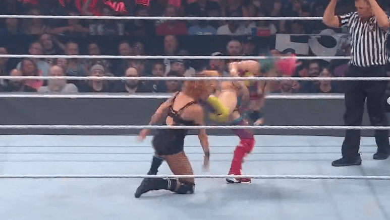 明日华连续掌切贝基,再来一记腾跃后撞